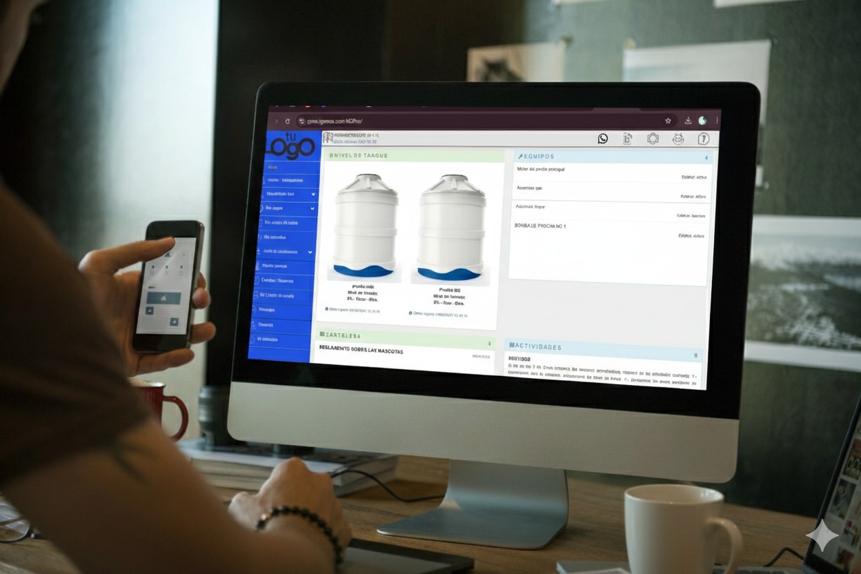 Solución integral IoT que conecta su mundo físico con la nube. Monitoreo de agua, seguridad, control de acceso y automatización en tiempo real integrados con gCon.