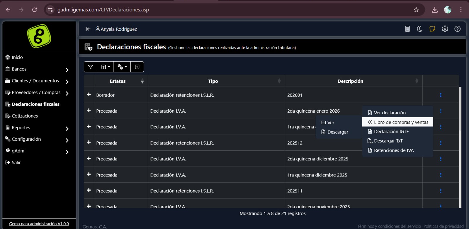 Simplifique la preparación de declaraciones. Genere automáticamente los archivos XML para ISLR y TXT para IVA estructurados según requerimientos del portal del SENIAT.